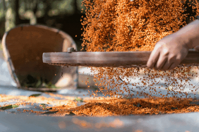 蕞后,将捶打好的香料团放置在阴凉干燥处陈化使香料之间的香气充分融.合,再取醒好的香粉和成泥团;