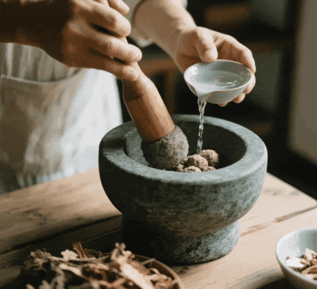 再将配比好的香粉置于青石臼中以榉木杵手工捣杵3000次捶打至发.酵,将香材的香气发.酵到蕞浓郁时刻;
