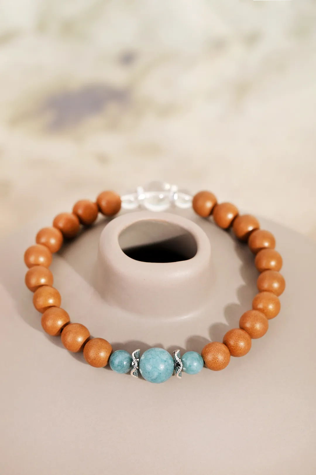 银饰莲花配饰的利落线条复刻敦煌壁画的莲花宝座,尽显「守护之姿」,它让整条手串还原了敦煌的精神内核。