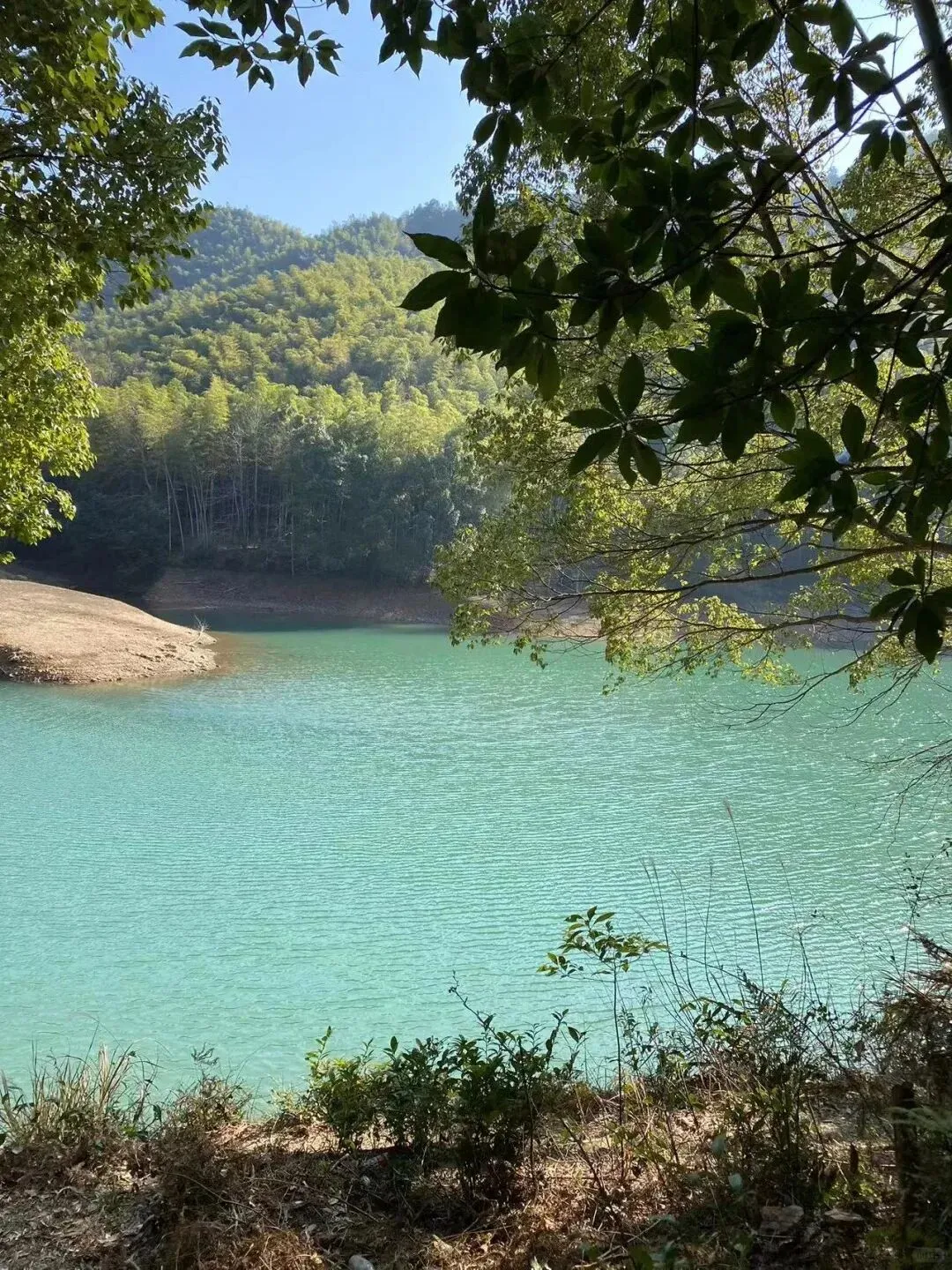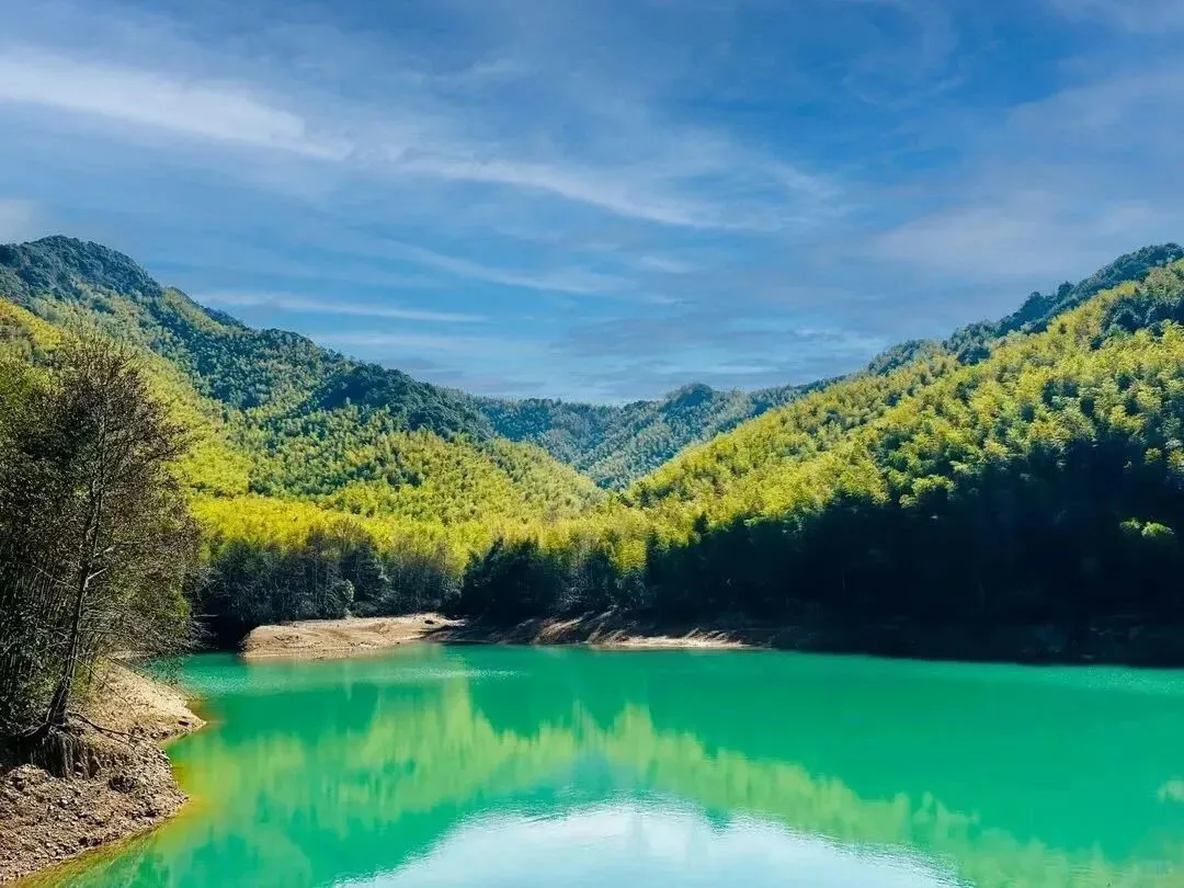 小岩坞水库,你会被一汪碧潭所惊艳。水库面积不大,在三面环山的竹林掩映下,那样的翠绿,沁人肺腑,仿佛是大自然赋予我们一个蓝心绿肺。