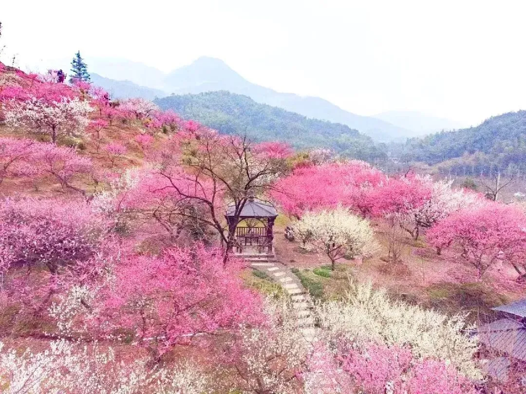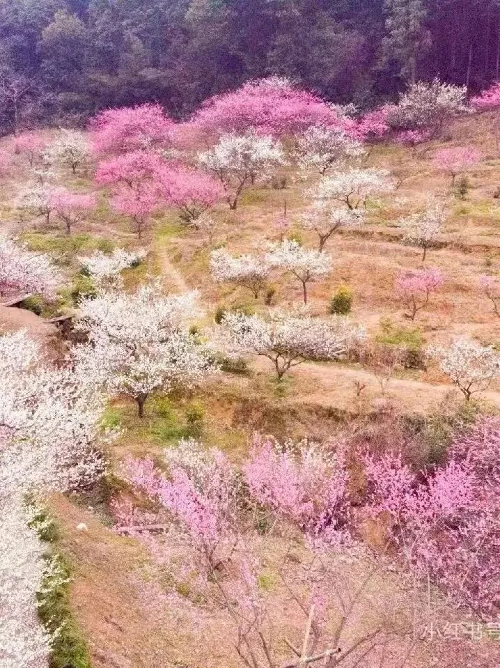 2、【吉山梅园万颗梅树,漫山遍野红白相拥,与山水相映成趣,宛若仙境。