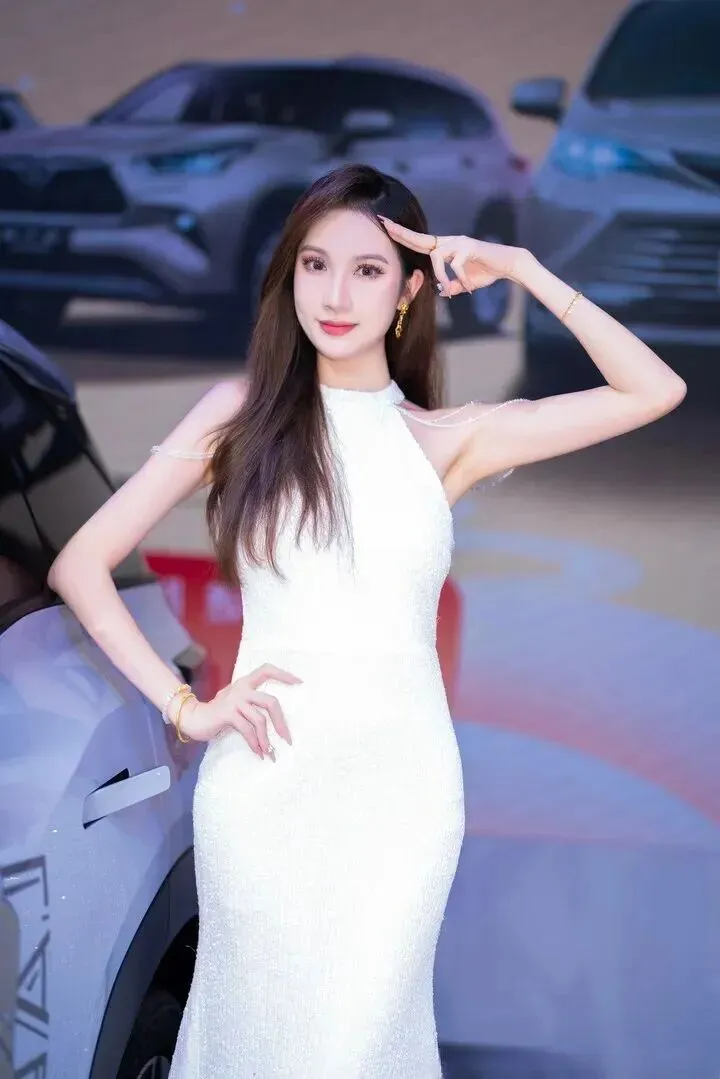 车模的.穿搭不光为.了漂亮.,还得跟.车子、.场地搭调.。有位.姐姐穿.了鱼尾.裙摆的.裙子,线条.和车身的.曲线呼应.得特别好.。她站在.车边的时候.,显得特别.优雅。