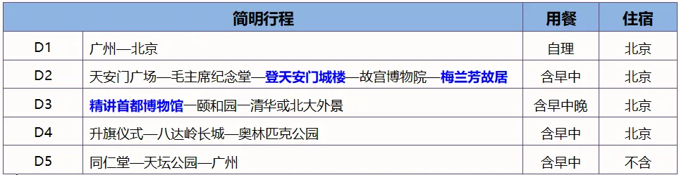 2.故宫游览时间较长,本日午餐时间较晚,建议自备一些点心和零食充饥。