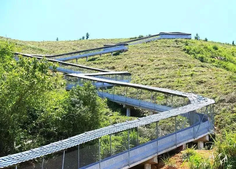 在乘坐滑道的同时又能欣赏茶园风光,如同坠入烟霞之中,惊险刺激中又有几分浪漫!
