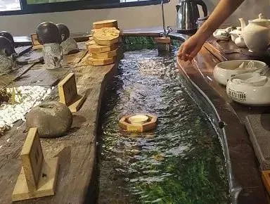 茶,是这里永不消失的话题。白天你可以选择在品茶厅悠闲品茶,观曲水流觞。