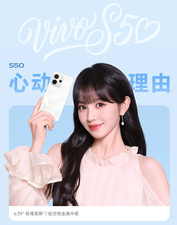 重点推荐vivo S50系列(含S50、S50 Pro mini),堪称“女神专属长焦Live神器”,颜值与实用性拉满。外观上,推出告白、灵感紫、悠悠蓝等柔美配色,其中告白配色采用纱缎光刻工艺,白里透金的细腻光泽,触感温润且不易沾指纹,航空铝浮空镜组搭配珠宝级高亮倒角,质感高级,搭配不同穿搭都能轻松出彩。机身兼顾轻薄与握持感,S50 Pro mini配备6.31英寸小屏,黄金比例设计更贴合女生手掌,轻松放进小包,日常携带无压力。