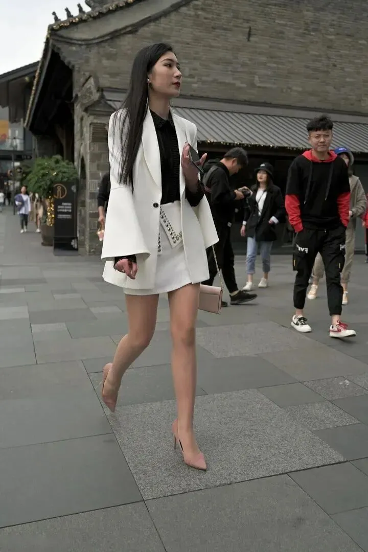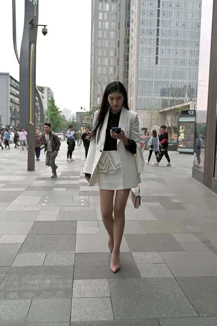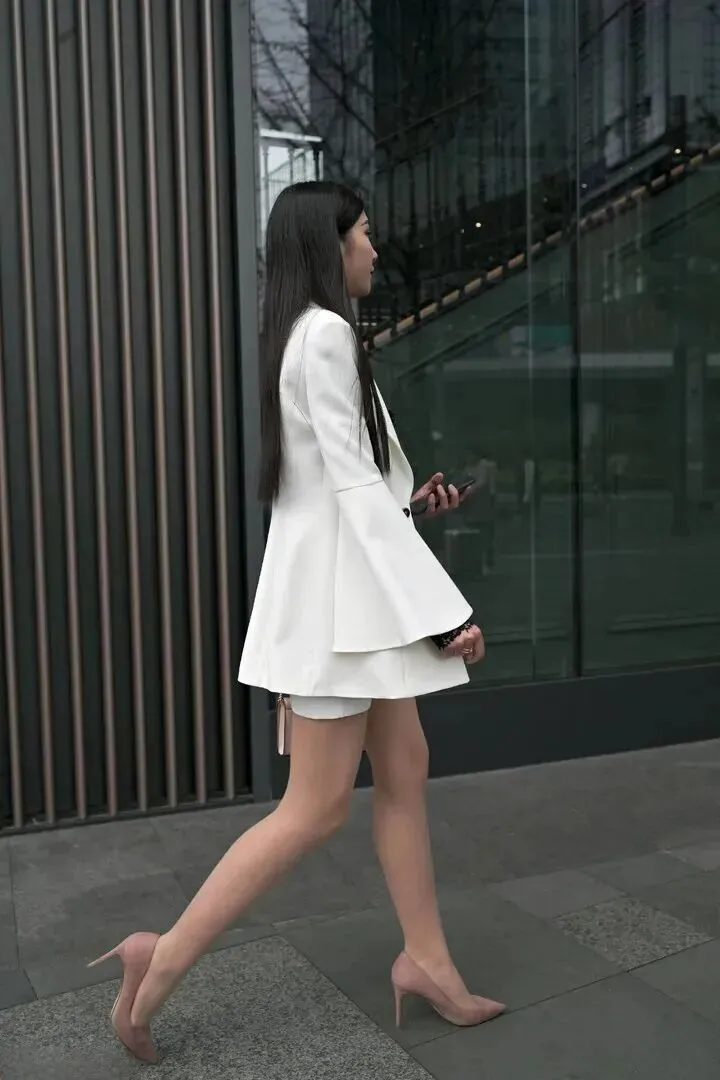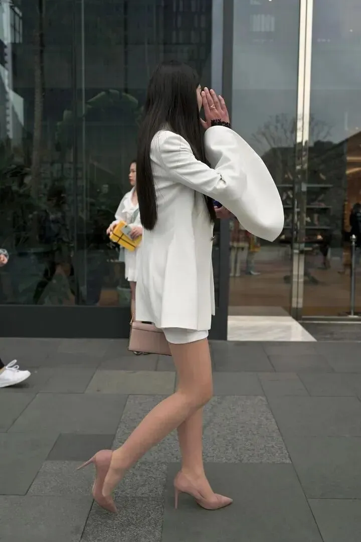 先说.说最经典的穿.法。.白色西装.套装.绝对是懒.人福.音,不用费心.搭配,一.套上.身立马.显得专业又精.神。图片.里的女.生就穿了件.长款.白西.装,配.合同色系.的短款连衣.裙,脚踩.裸粉色.细高跟,整个.人看起.来又.干练又.柔美.。头.发黑长.直,背个.精致.的小.粉包.,这套打.扮上班开会.不失体面.,下班喝茶.也不.违和.,实.用度.爆表!