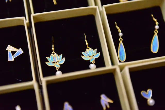 在闵行美育“最美手作人”董慧老师的指导下,了解点翠工艺的历史渊源,欣赏其独特光泽与色彩,探索中国传统金银首饰制作工艺的魅力。在胸针或者耳环饰品上进行仿点翠技艺学习,使用环保材料,以仿翠羽展现这一传统工艺的精髓,让您亲手打造一件独属于自己的点翠首饰。
