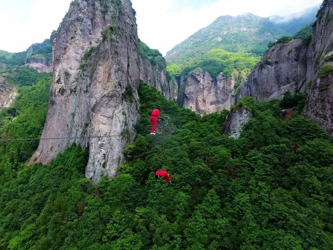 ★★★★★ 看浙江省非物质文化——灵岩高空飞渡表演,空中芭蕾
