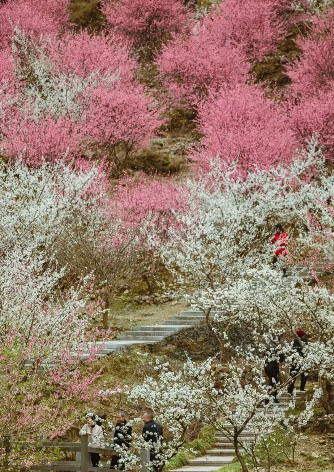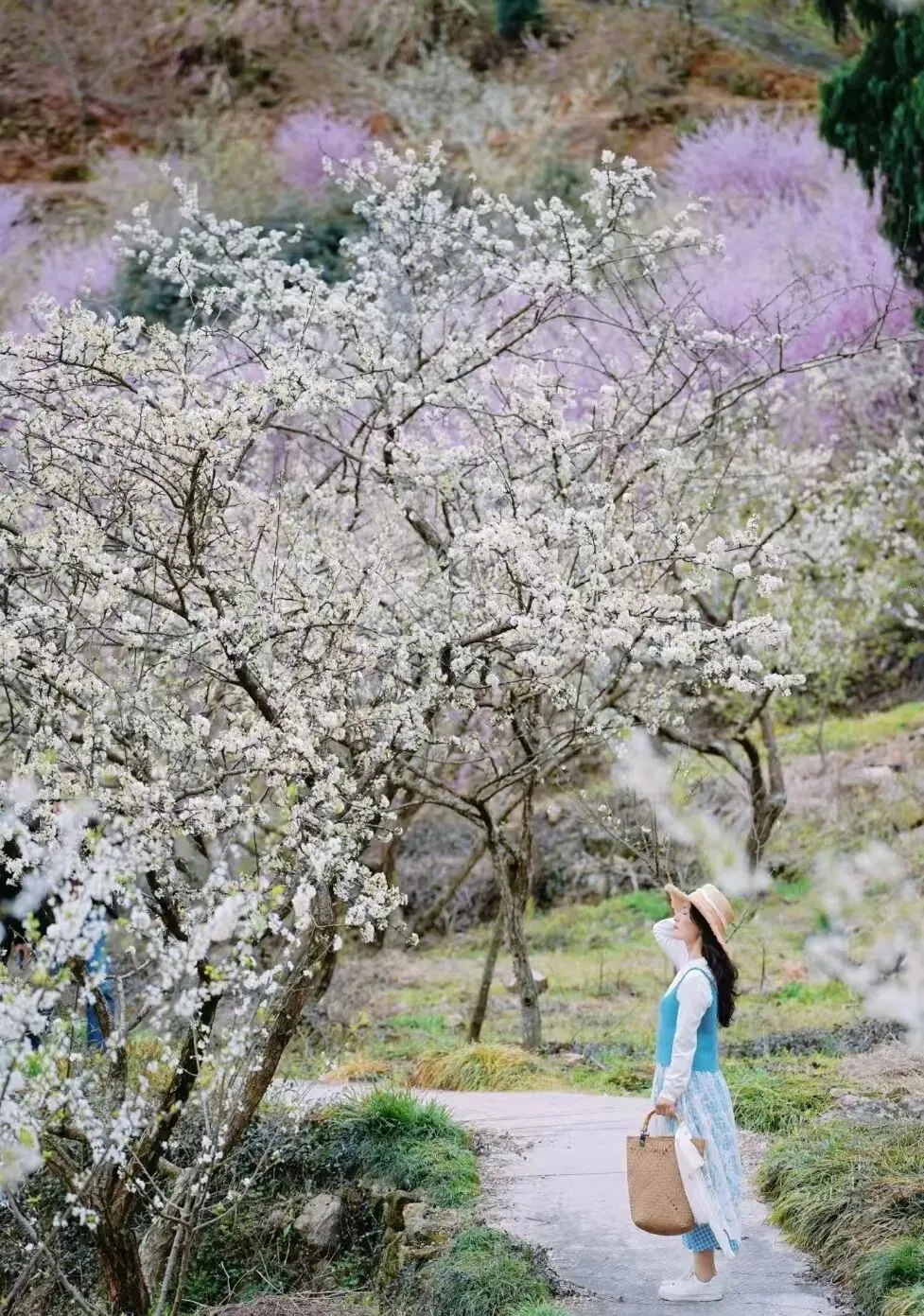 数以万株李树花枝齐放,成片的李花犹如白色锦缎,镶嵌在山谷,清新素雅,如梦如幻