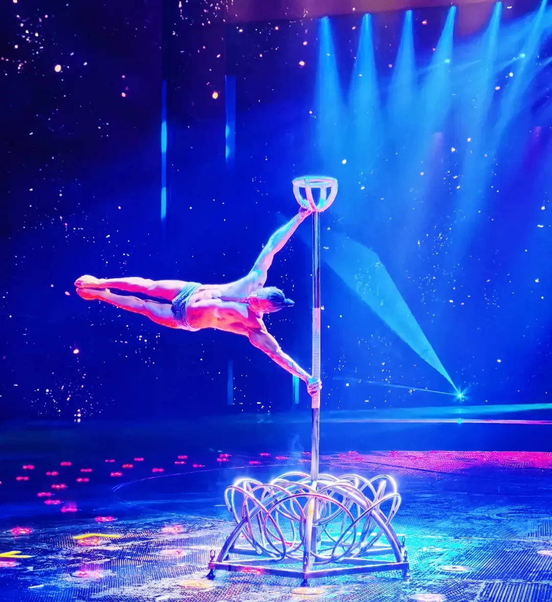 整场演出突破传统马戏边界,将惊险杂技、神奇魔术、萌宠互动与欢乐舞蹈完美融合。9 国艺术家各展绝技,既有双人皮吊的力量与柔美,也有单手顶、黑暗飞轮的惊险刺激,还有上过央视的萌宠小狗憨态表演与小丑趣味互动,全方位覆盖不同年龄段观众的喜好,真正实现“老少皆宜”。