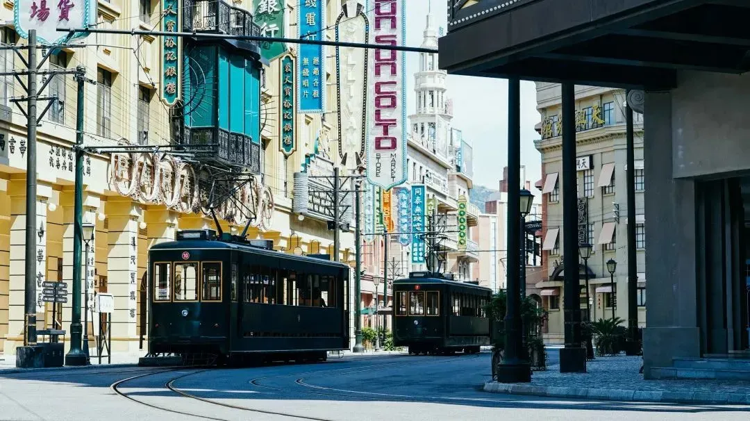 此外景区为你造一个梦,带你梦回1940年代的上海滩,鳞次栉比的万国建筑群落,琳琅的店铺、穿梭的电车,还有空中跳动的音符,都弥漫着老上海的摩登情调。
