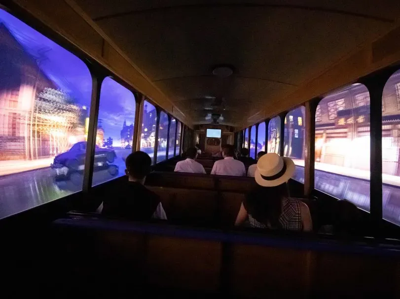 国内首创胶囊式屏幕游乐互动体验秀,乘坐有轨电车穿梭在外滩老街上体验一场电影穿越之旅,全长 1.8 公里,体验用时约 25 分钟,逼真的场景+震撼的音效,带来前所未有的感官刺激,一起穿越枪林弹雨。