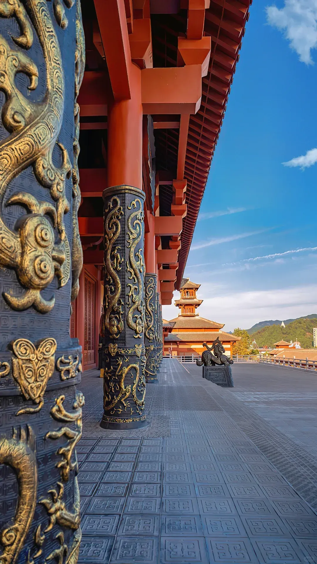 汉服穿越和秦王宫是标配。这儿的景五步一楼,十步一阁,廊腰缦回,檐牙高啄。随处一站,你便有绝世国风之美。
