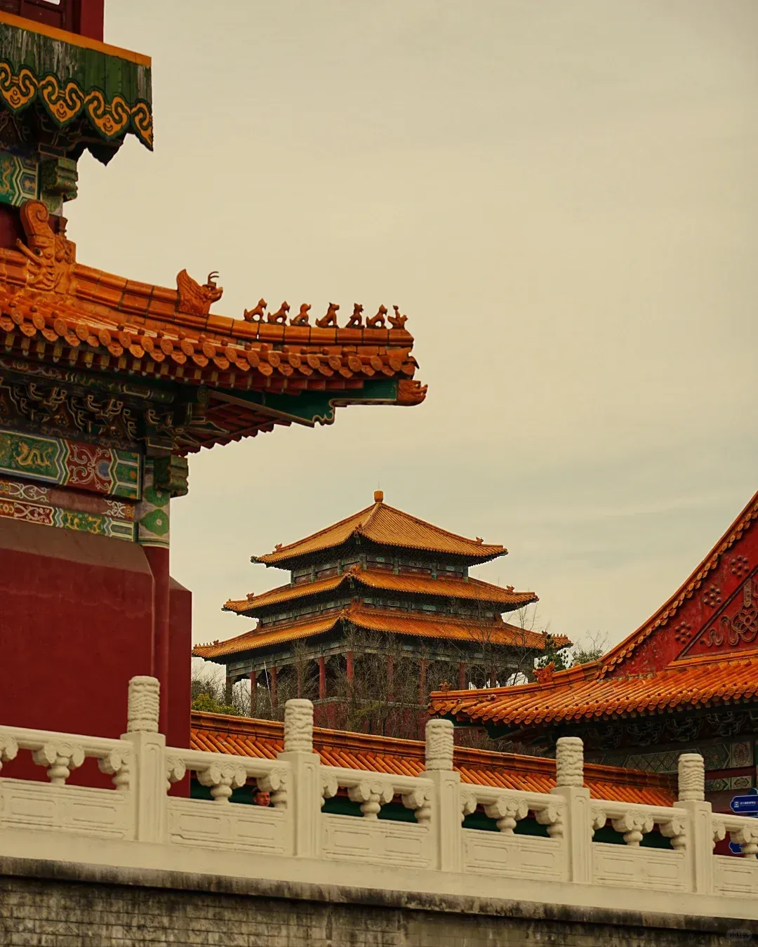 这里与北京故宫的相似程度让人震惊,单体建筑全部是1∶1仿造,只有“天安门”缩小了20%,名字也用了明清时期的“承天门”、大明门、承天门、午门,然后是太和门,乾清宫为中轴线的终结。