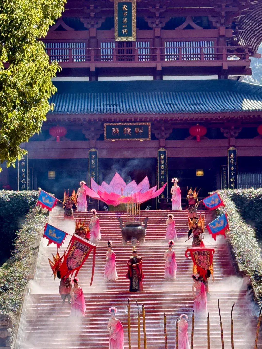 早餐后国家5A级旅游区【缙云仙都(车程约2.5小时,游览时间约3小时)游览有“天下第一峰”、“天下第一石”、“天下第一笋”之誉的【鼎湖峰】(游览时间约1小时,不含鼎湖峰缆车单程25元/人,双程40元/人,非必消,自愿自理):是整个仙都风景名胜区的核心,感受皇帝文化。观赏老鼠娶亲民俗表演 (表演时间:周二至周日上午8:50分)(视游客情况时间会微调时间约10分钟)鼎湖峰黄帝祠宇:轩辕赞乐舞表演 (表演时间周二至周日上午9:50分 下午13:30分 时长约30分钟) 。具体以景区当日公告为准。游览【朱潭山】(游览时间约1小时),主要景点有仙堤、晦翁阁、九龙壁、超然亭。后游览【仙都石窟】(游览时间约1小时,免费景点,如景区特殊情况未开门,则放弃游览,我社不承担任何责任)一处壮观的石窟群。过去,通过人工开凿与自然完美结合在一起,使得这处上千年来当地人开采石留下的遗迹,宛如一处隐蔽世界。高耸而雄伟的岩石引入眼帘,令人仿佛置身于魔幻世界,像美国犹他州那个奇特的拱门地质公园,这些岩石均为黄色,形状犹如条纹。四面崖壁凿痕历历,令人不禁而叹,仰望石壁有顶天立地,似直冲云霄的天梯。后前往【河阳古民居】(车程约30分钟,游览时间约1小时)河阳古民居至今保留元代“一溪两坑、一街五巷”的布局。村中有大小祠堂15座,明清传统古民居1500多间,古庙宇6座,古石桥1座。村庄94%以上为朱姓,以八士门街为中轴线聚族而居。建筑多坐东北朝西南,相互连通。村内池塘、沟渠、水井分布层次分明,庄园式建筑规模大,单体设计独特,砖雕木雕技艺突出,题材丰富,形成儒家耕读文化和农业/产相结合的浙中南古村落景观。独具匠心的古建筑营建技艺,独树一帜的剪纸、刺绣、织带等传统工艺,比比皆是的古雕刻、古壁画、古诗词、古匾额以及古朴淳厚的民风民俗,让河阳成为目前江南现存规模最大、历史延续最久、宗族文化最深厚的活态古村落之一。