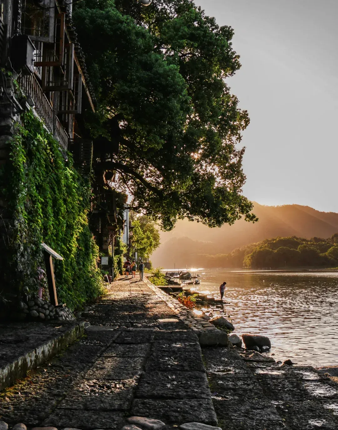 一边是满眼绿色的古樟树与溪流,一边是悠久历史的古街