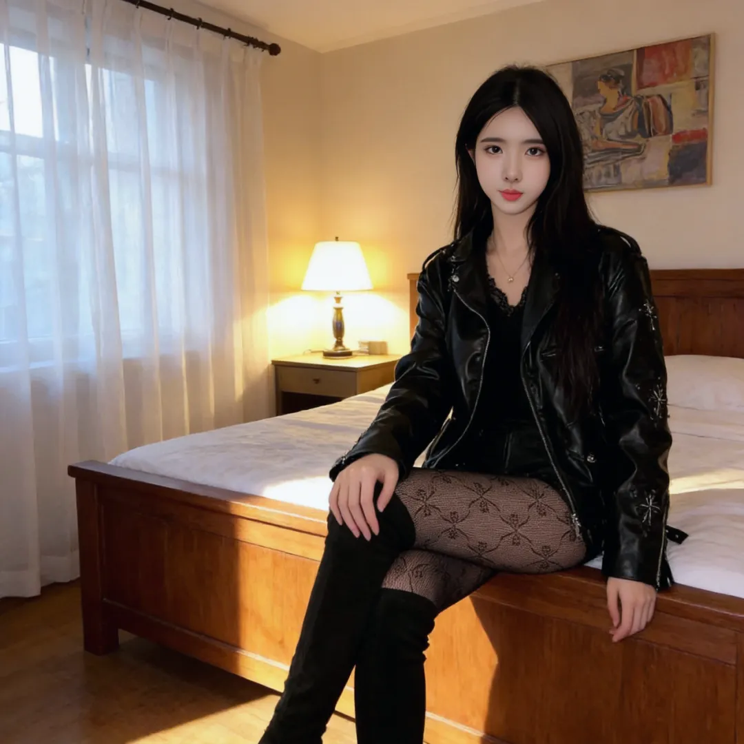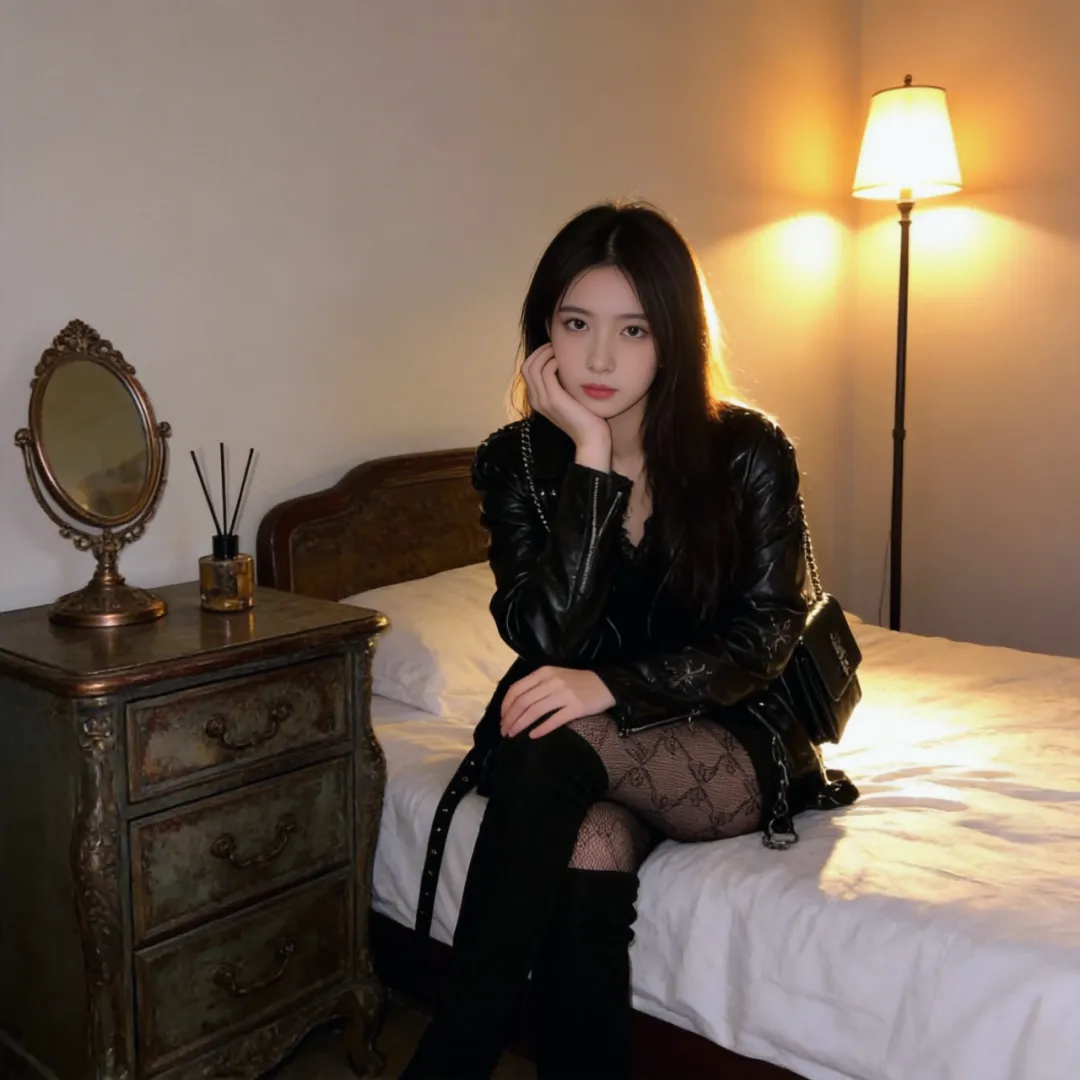 午后的卧室需要一点戏剧张力。将及膝战靴与夸张的泡泡袖衬衫组合,用金属腰带收紧腰线,让硬朗与柔美在空气中碰撞出火花。此时不必遵循任何搭配法则,让靴跟在木地板上踏出自信的节奏——毕竟在自己的领地里,所有规则都该由你来制定。