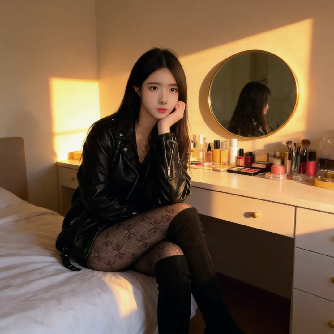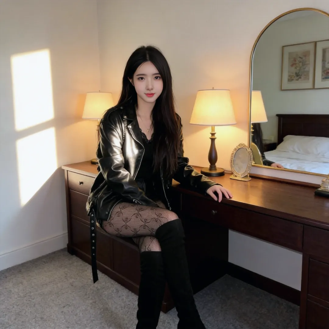 当丝绒长靴遇见真丝吊带裙,两种不同光泽的材质在晨光中交织出流动的盛宴。选择与靴同色系的眼影轻扫眼尾,让整体造型形成闭环。此时不必急于梳妆,让凌乱的长发与靴筒上的流苏共舞——卧室穿搭的终极奥义,是让每个细节都散发着"刚被吻醒"的慵懒气质。