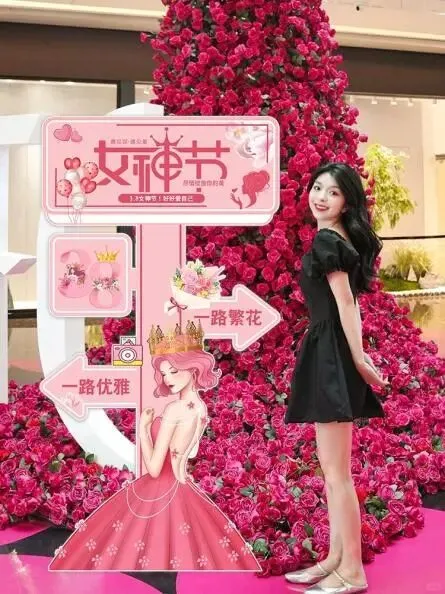 在游客中心的「入门打卡拍照区」,设置了超有仪式感的“三八”女神节主题打卡点。手持可爱的KT板,在花丛中定格此刻的笑容。