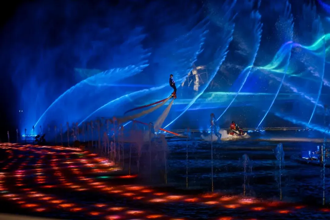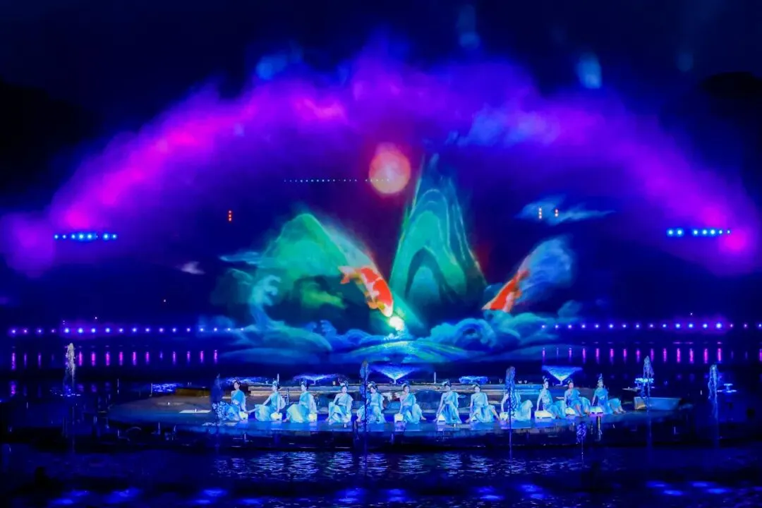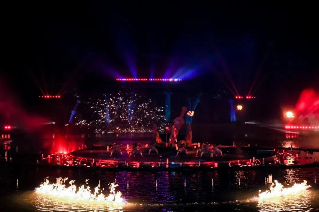 福建省继印象大红袍后又一旅游演艺名片,福州首个大型实景演艺秀首个创新的沉浸式动感演艺。《寻梦·千年闽越》以榕月湖为舞台,以城门楼为背景,融入大水车、大榕树等景观地标,营造沉浸式的演出体验。演艺投资约1亿元,聘请了知名导演团队,融合裸眼3D投影、水秀、火秀、水幕电影等技术,同时采用动感升降福船看台,凭借与气爆泉、高喷泉等技术,让您体验登船出海、搏击海浪的沉浸式观演过程。