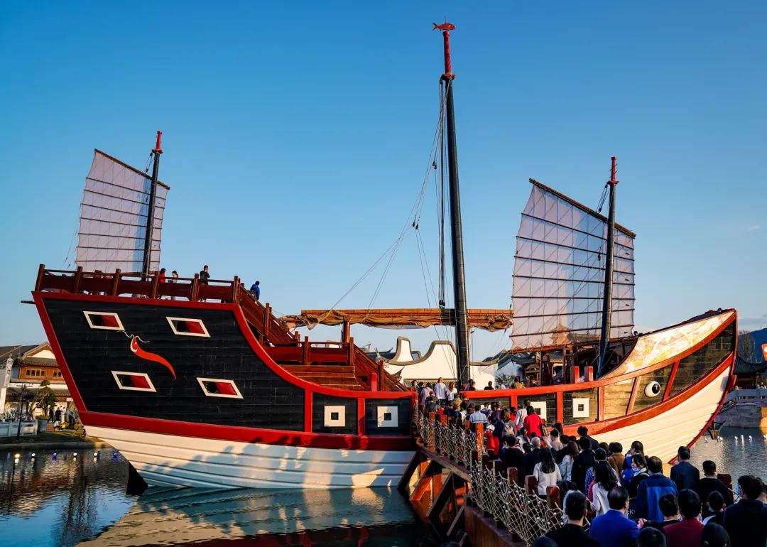 约30米超大传统木质风帆福船,登船参观并欣赏升降帆表演。