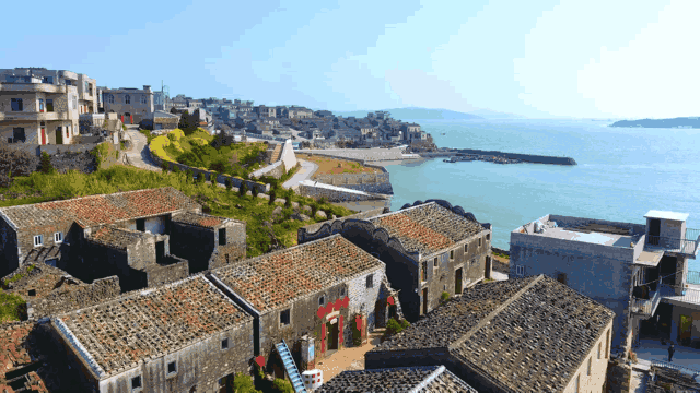 海子说,他想建一所房子,面朝大海,春暖花开。而北港村里多的是这样的房子,成片的石头屋,依山傍海错落有致地散落在海滩上,红砖瓦青石条,马鞍形风火墙人字形屋顶。