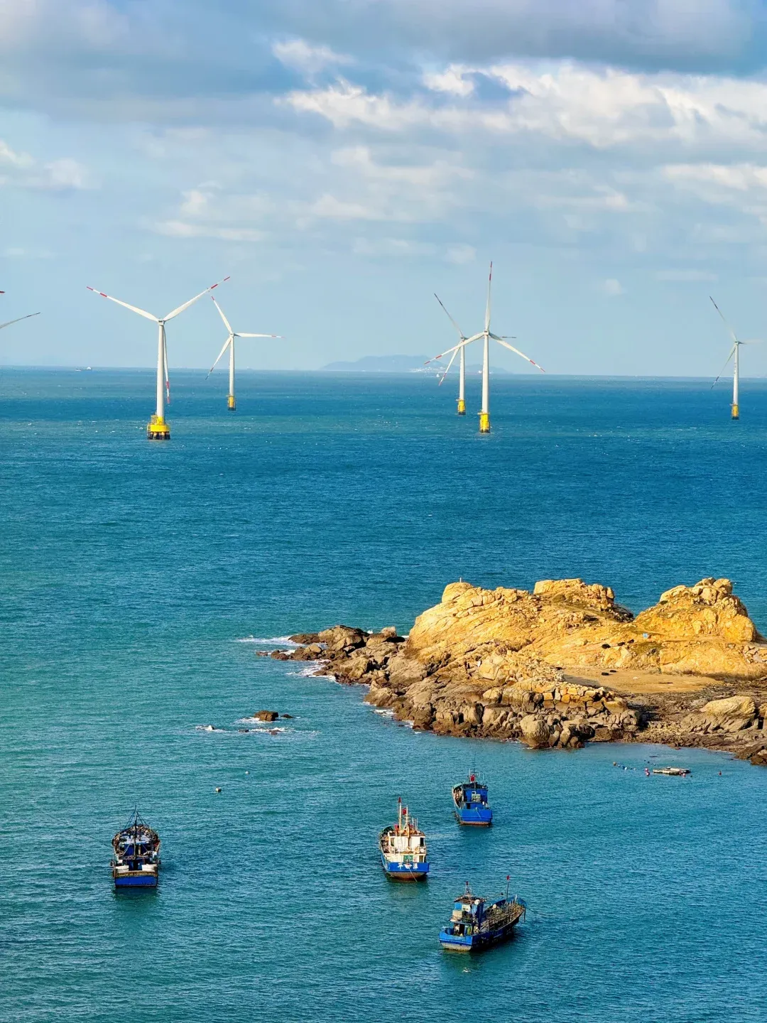 而后前往这里有绝美的海边沙滩和风车海和落日,美得无法言喻真的好浪漫—【长江澳风车田】,风力发电机在平潭岛是一个地标,实际上在任何海滩都能看到,但在这一块尤为密集。我印象最深的是坐高铁从福州到平潭的路上,经过海峡的时候,看到远处伫立在海里的发电机犹如一头头巨兽,异常壮观,随着海面的波光荡漾进眼里,那一瞬间就仿佛在宫崎骏的漫画里,进入了另一个世界。