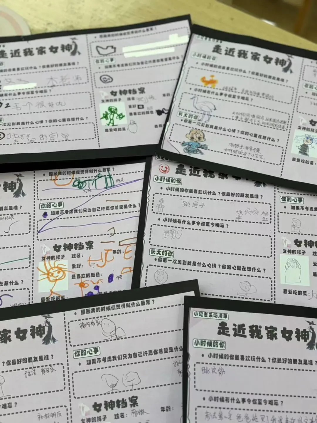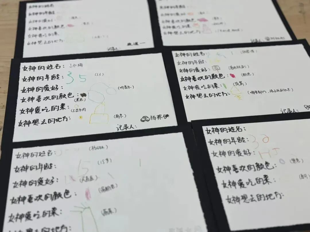 对照女神采访清单,小朋友们完成了有关于女神信息卡的制作。
