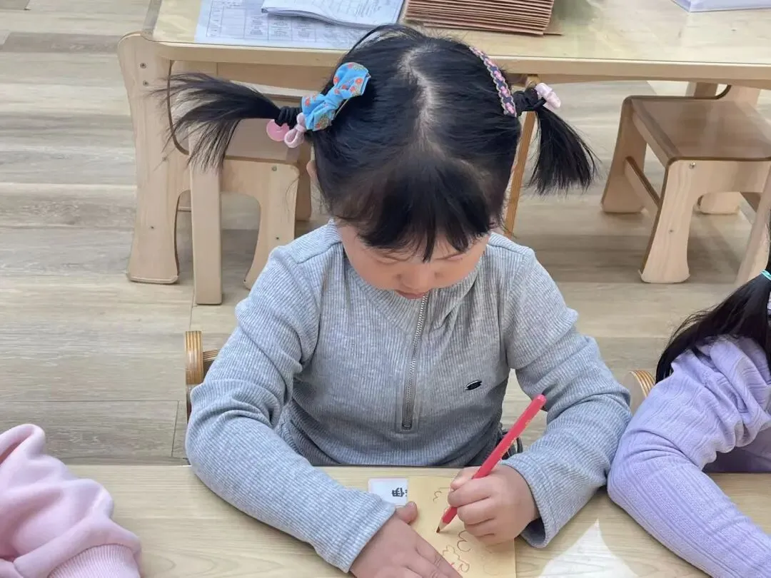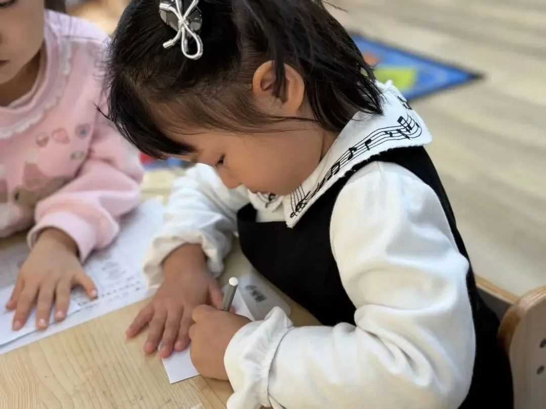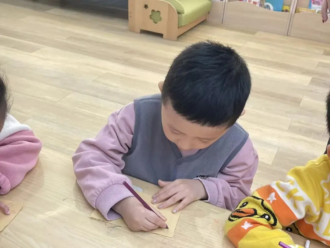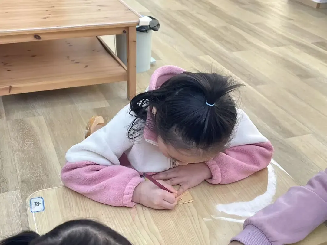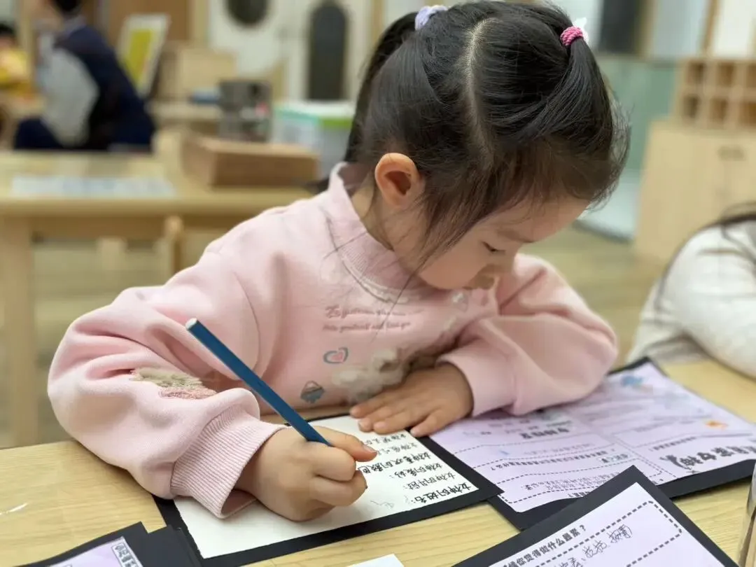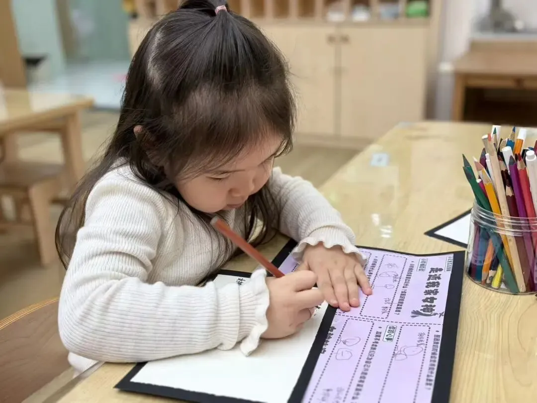 小朋友们和老师共同思考并回顾了刚刚观看的腮红都需要哪些原材料,都需要哪些步骤,于是我们决定制作一个腮红制作手册,为后续的制作提供参考。