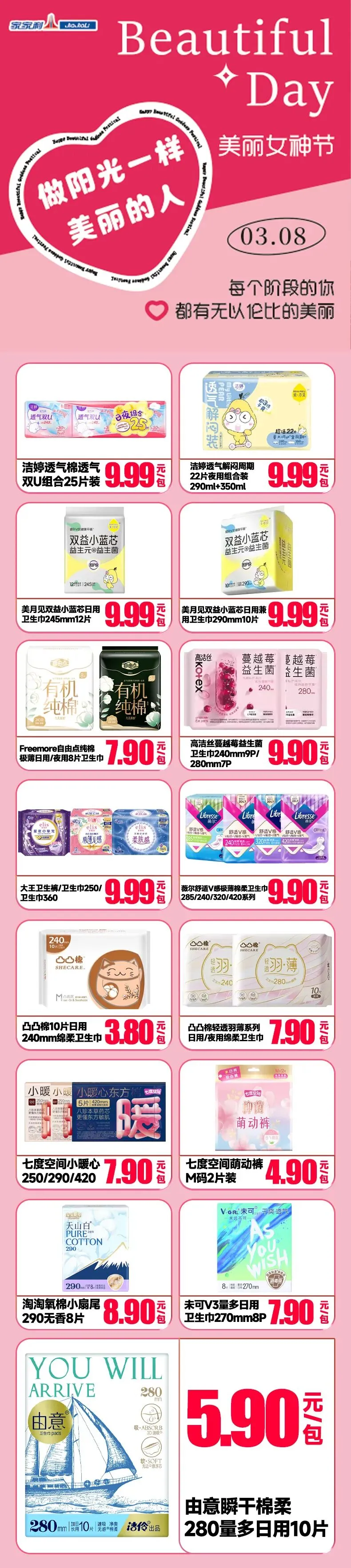 当前位置:首页>美女资讯>【家家利超市三八女神节】自由点日用夜用7.9/包,七度空间萌动裤4.9/包!