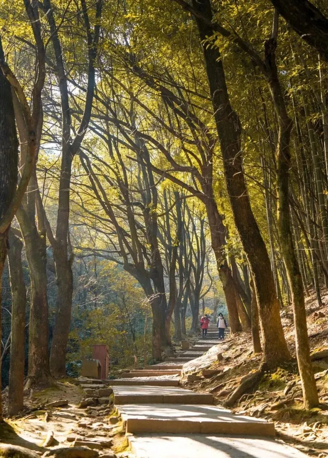 眼下的初冬时节,更是步道的 “限定浪漫时刻”。残枫的暗红、银杏的金黄,仿佛闯入水墨画般的秘境。阳光穿透枝叶的缝隙,踩上去 “沙沙” 作响,是初冬独有的治愈音效。
