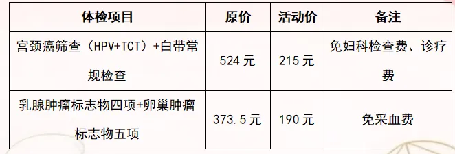 活动一:女性体检套餐