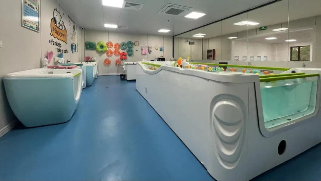 婴幼儿游泳中心,位于中心二楼区域,其卫生服务要求对标医院标准。