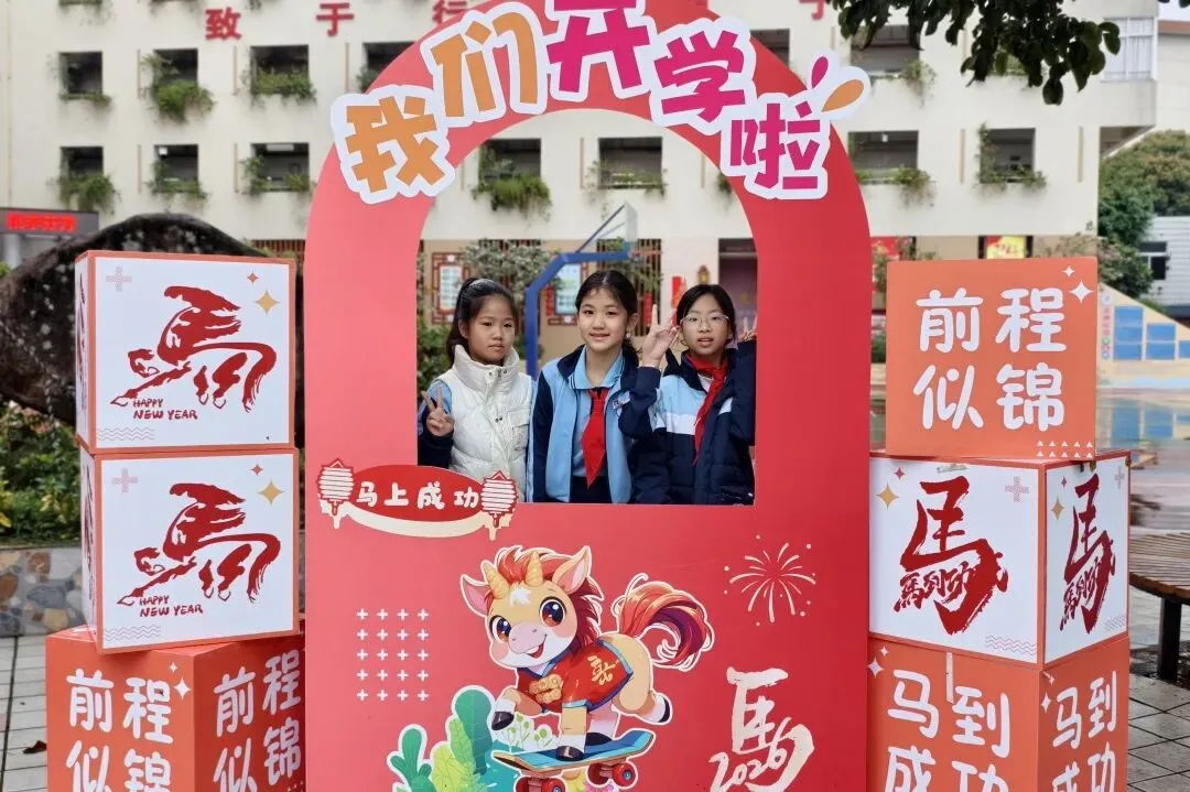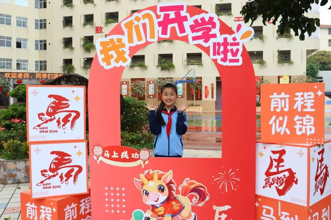 马跃千程山河秀,龙腾万里日月新。2月26日上午,我校许真真校长携行政团队,与学校礼仪队的同学们一起迎接学子重返校园。入校通道上,五块精心设计的文化跨栏牌依次排开,内容紧扣“致惠教育”的办学理念与“致行惠远”的校训精神。孩子们兴致勃勃,迈着轻快的步伐依次跨过,在充满仪式感的趣味体验中,潜移默化地感悟校园文化内涵,也借此许下新学期逐梦致惠、向阳成长的美好心愿。