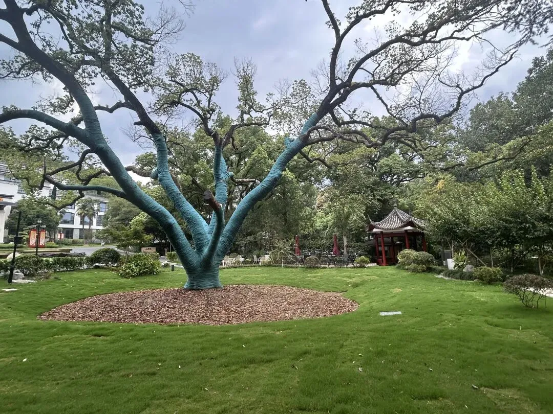 看古木参天、绿草如茵,