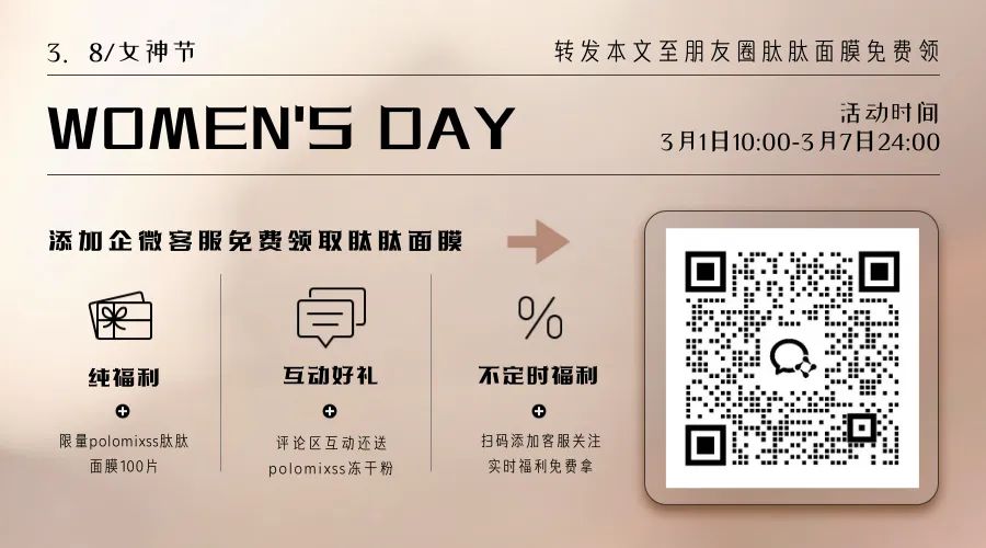 3.8女神节|提前预告:polomixss肽肽面膜免费领,评论区还有惊喜拿!