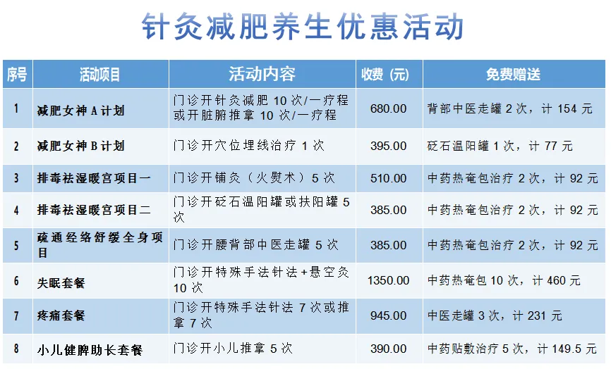 针灸减肥养生优惠活动最终解释权归嘉禾县中医医院针灸推拿康复科