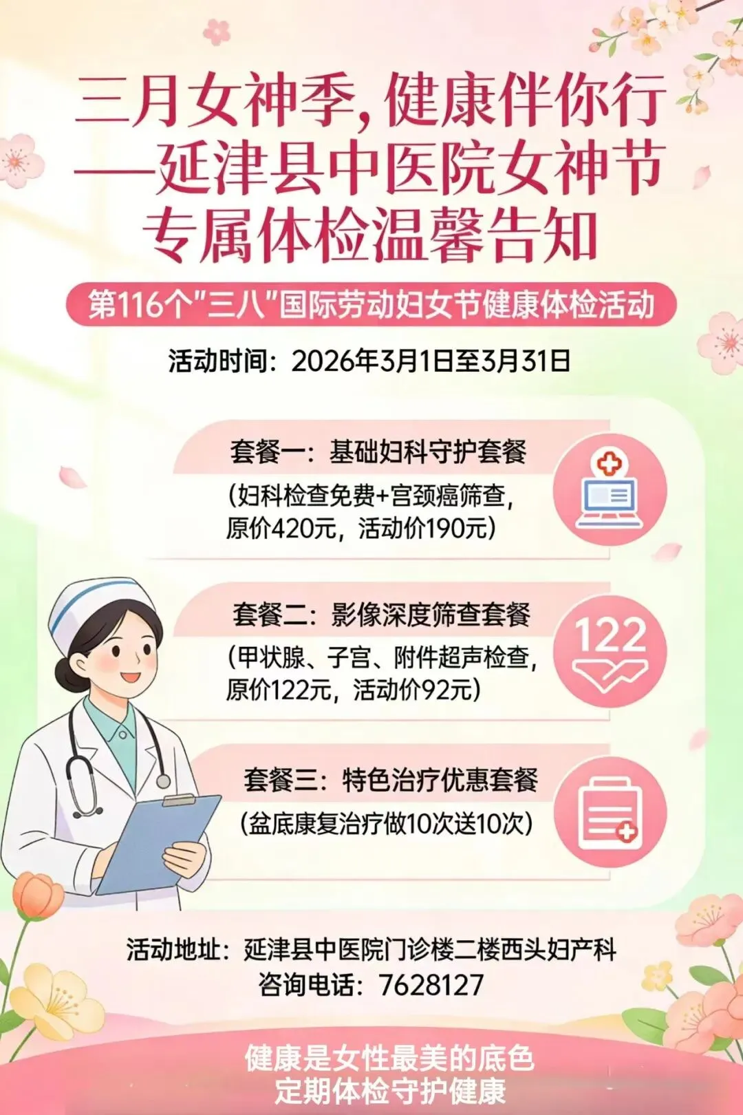 三月女神季,健康伴你行——延津县中医院女神节专属体检温馨告知