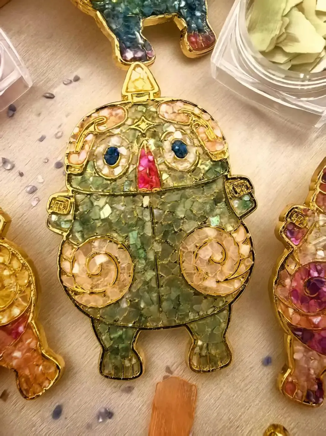 选色、涂胶、镶嵌、封层——一步步,将深海虹光嵌入青铜轮廓
