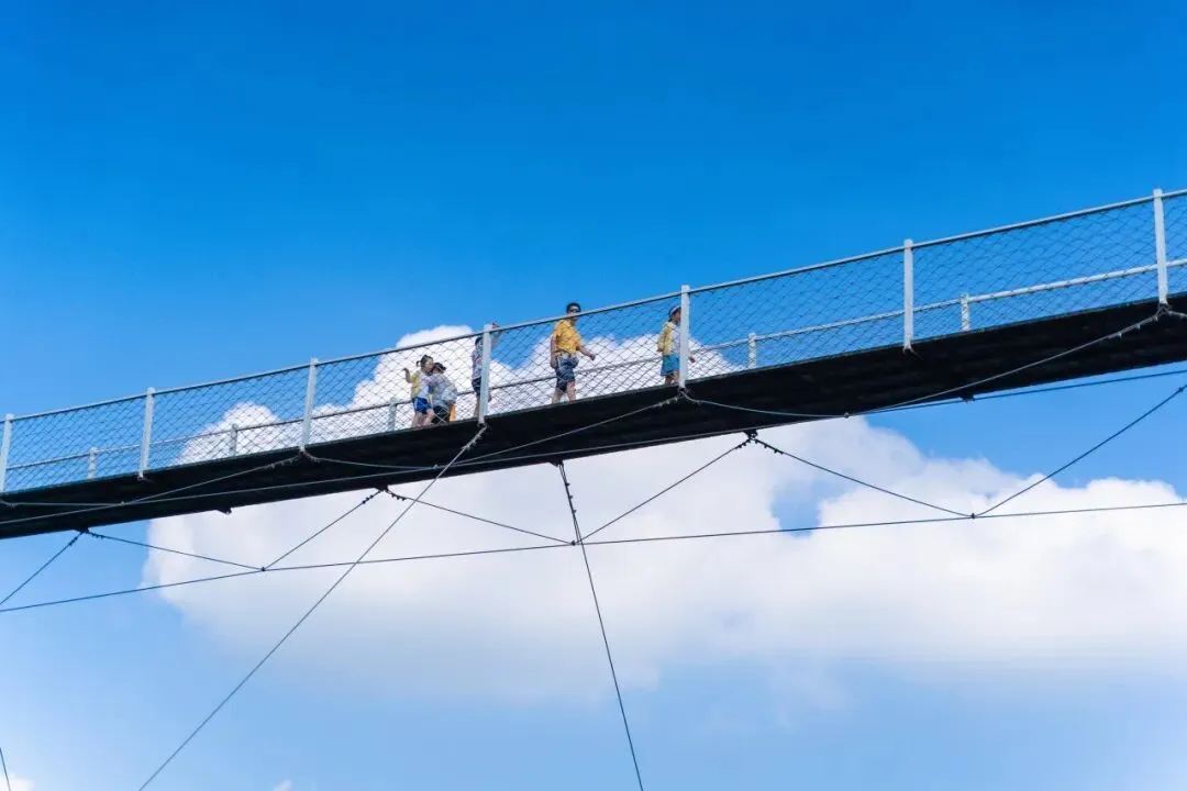 【空中自行车】你在自行车上看风景,看风景的人也正在桥上看你~设置在水晶廊桥上方的空中自行车,刺激大幅升级,你与悬崖的距离就只剩一条钢索,最大程度挑战你的胆量!