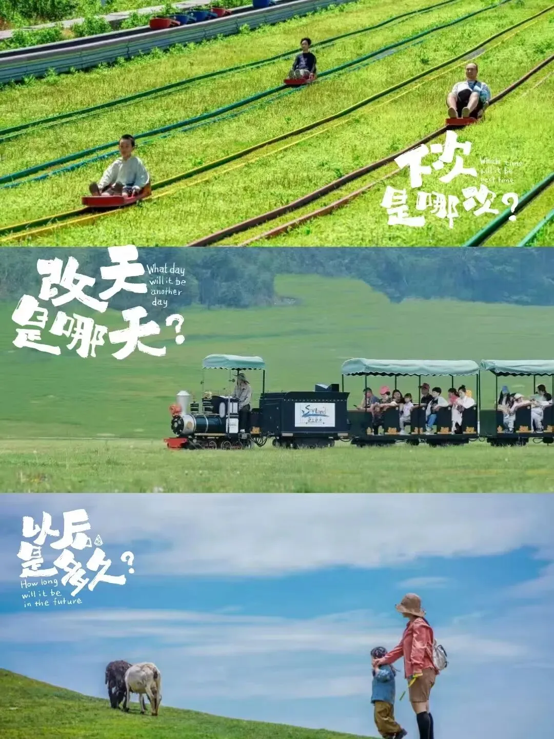 高山草原{彩虹滑草,云中部落,无动力探险,矮脚马乐园,羊驼乐园,霍比特小镇,云端飞车,有轨滑草,射箭,坑爹过山车,气泡枪;