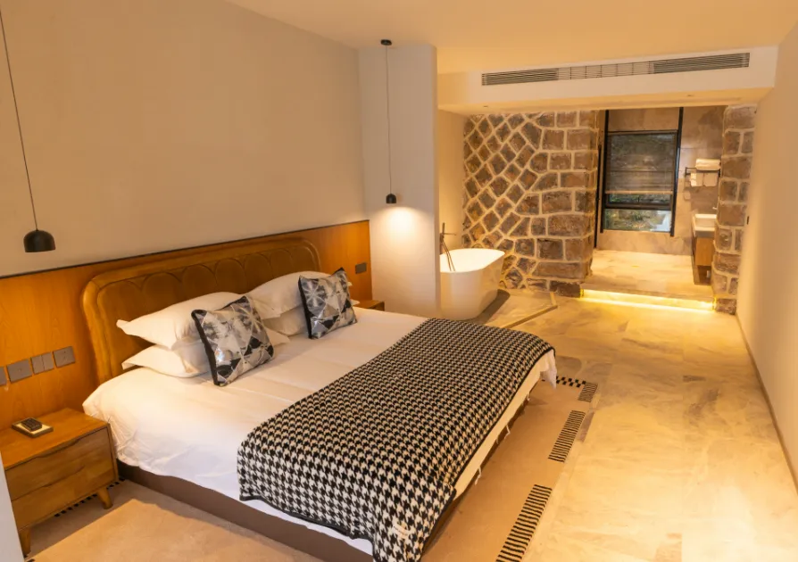 民宿藏于清幽山水间,被奇石美景环绕,环境静谧雅致,古朴与简约相融的院落,温馨舒适的客房,处处透着自然与治愈,一呼一吸间尽是山野清新,让人心旷神怡、自在安然。民宿以山水之美、以暖心之礼,守候每一位女神,赴一场宁静治愈、惬意舒心的美好之约。