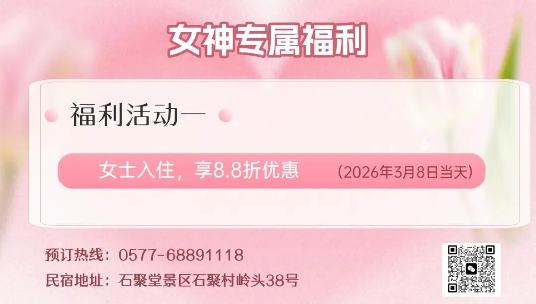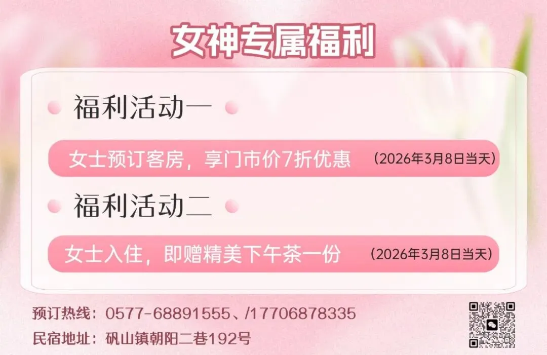 民宿以古村为景,以烟火为暖,在三八女神节之际,向每一位优雅从容、闪闪发光的她,致以最温暖的欢迎。民宿依山而建、古朴雅致,青石板路蜿蜒,院落静谧清幽,处处藏着岁月沉淀的温柔与诗意。周边步行可达福德湾老街,尝一碗地道矾山肉燕,逛一逛古村小店,解锁慢生活的美好。