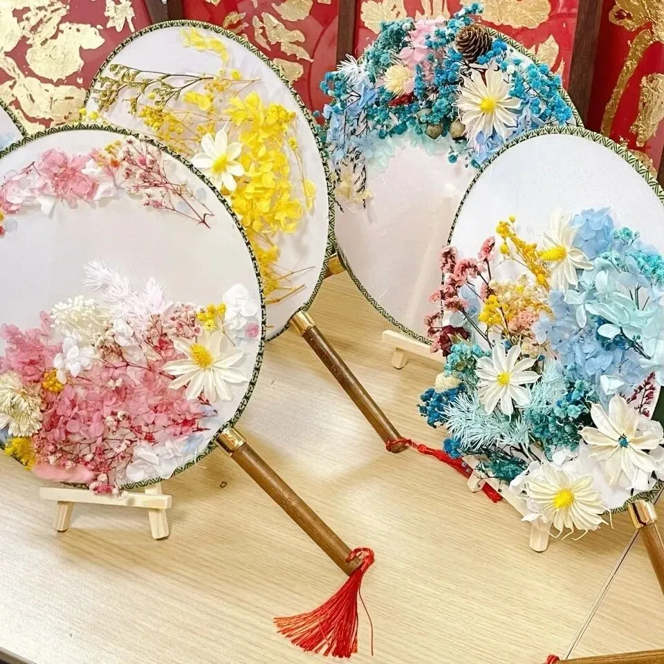 干花团扇+手工簪花全套DIY材料+老师全程指导,零基础也能创作,成品可带走,搭配古村拍照氛围感拉满!