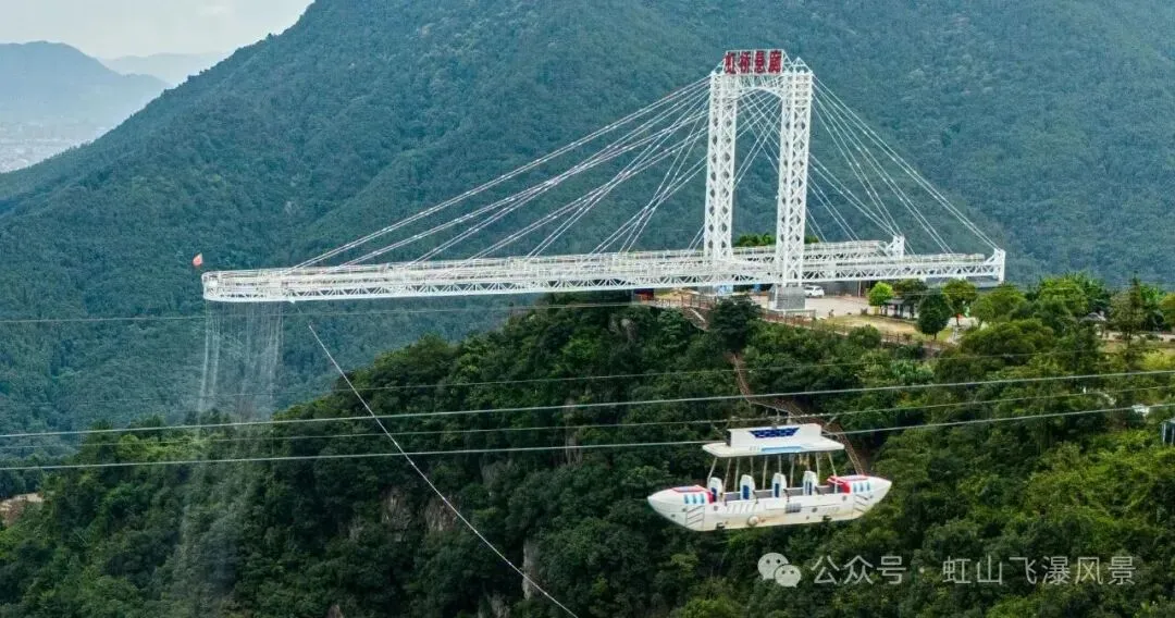 13:00 车赴【虹山瀑布】位于福建泉州市,海拔高六百余米,年平均温度低于市区4至6摄氏度,空气清新,夏秋凉爽。蜿蜒的溪水从80多米的断崖中飞流而下,溅起的水雾在阳光的照射下形成一圈圈美丽的彩虹,虹山瀑布因而得名。我国古代著名的方志史学家何乔远游历至此地有感而诗曰“红日照天地,飞雪白纷纷;道者偶来此,雷霆殊不惊”。视觉感触双重享受!百米落差的彩虹瀑布+超吉尼斯纪录的虹桥悬廊必定让你大吃一惊体验华东跨度最大的悬索飞船还有丛林穿越、网红秋千、划船、虹山土楼、儿童乐园......