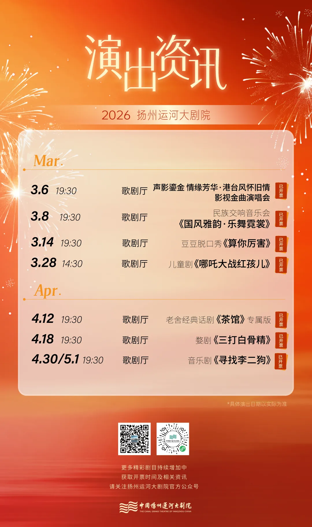 3月8日19:30 来扬州运河大剧院