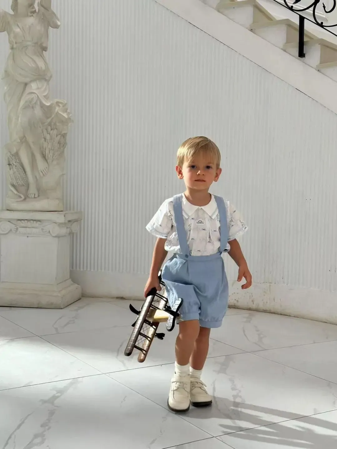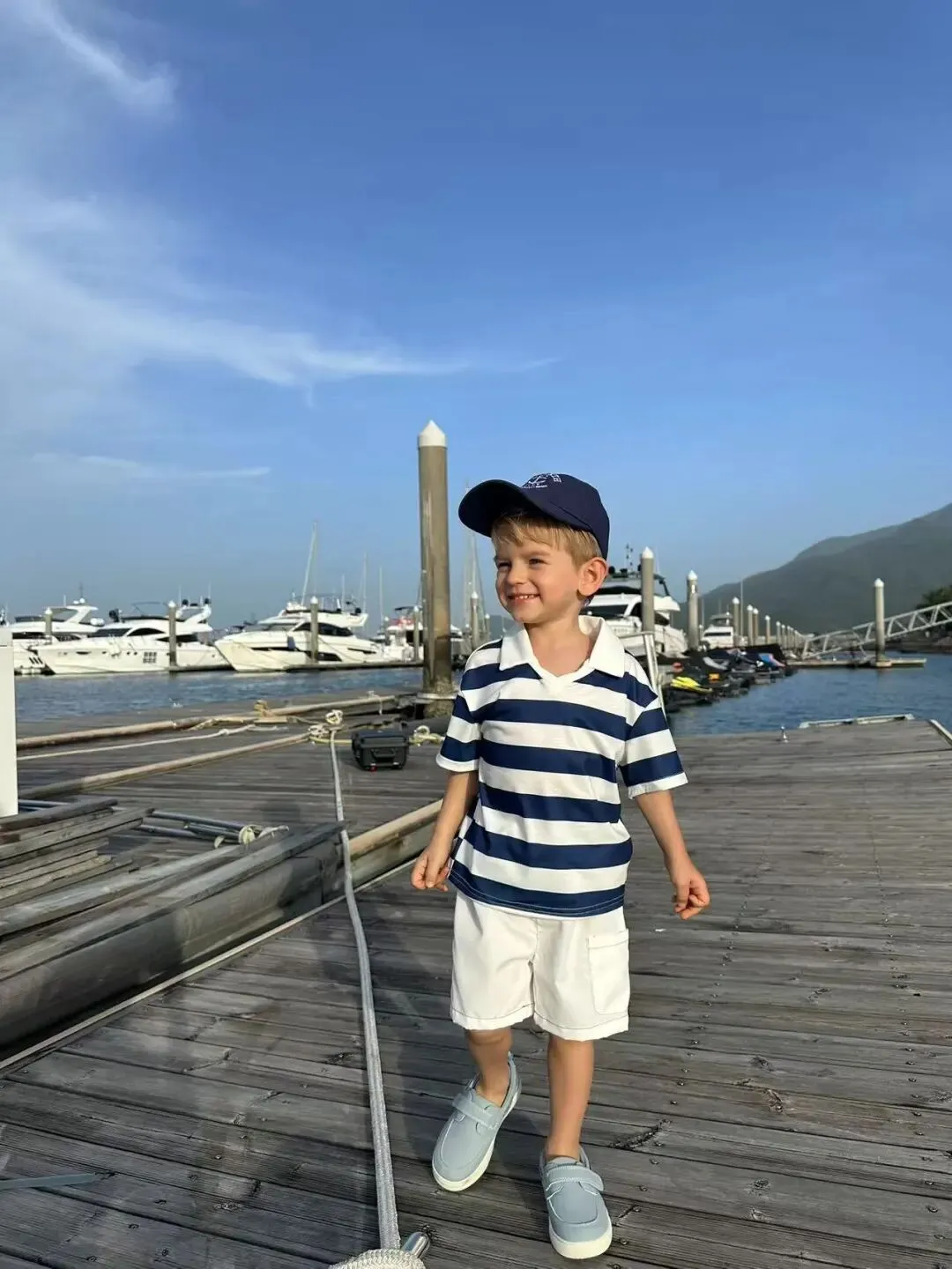 • 无论是复古背带裤的优雅,还是游艇码头的休闲,Theo都能完美消化,眼神里全是戏。
