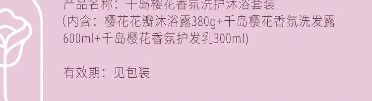 【规格】组合装(樱花洗发水600ML+樱花护发精华乳300ML+樱花沐浴露380ML)