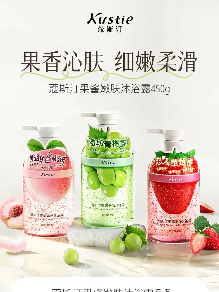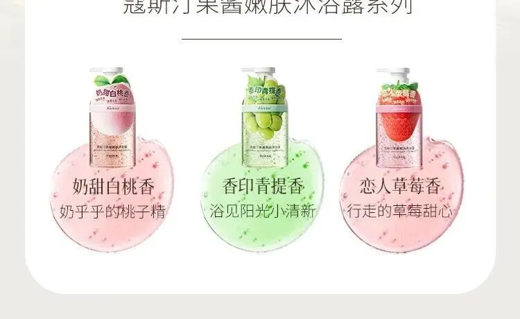 【产品】果酱嫩肤沐浴露:香印青提香、恋人草莓香、奶甜白桃香